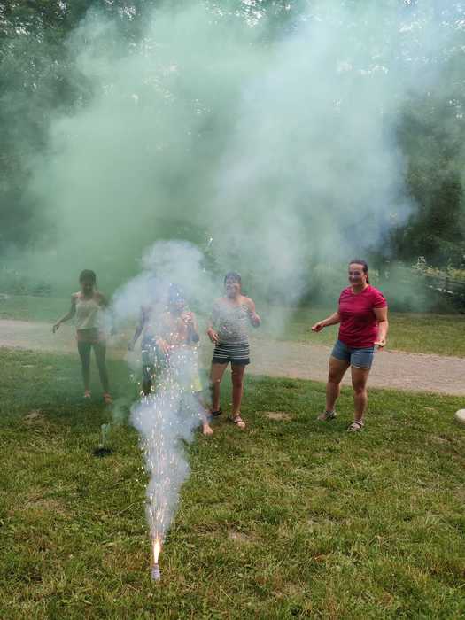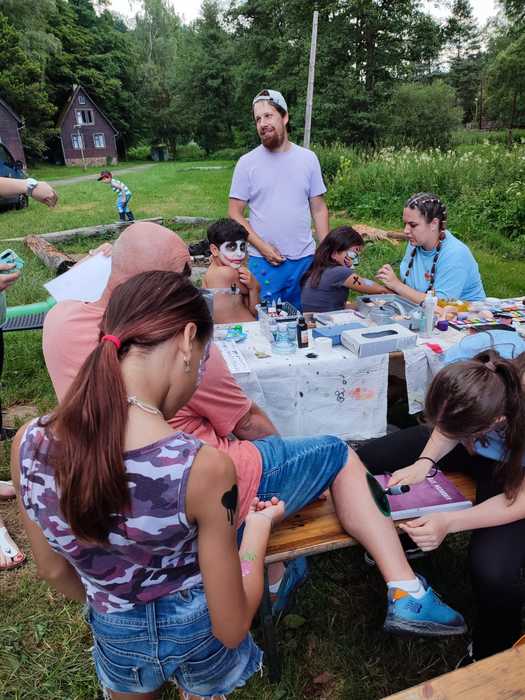 Letos jsme společně vyrazili na Hadinku (Vítkov - Klokočov). Pobyt jsme si náramně užili. Počasí nám přálo, takže jsme měli skvělé vyžití - koupání v potoce a na koupališti v Hranicích, výlet na Davidův mlýn, střelbu ze vzduchovky, stezku odvahy a mnoho dalších sportovních aktivit. Jako třešničku na dortu pro nás strejda Tomáš zajistil zábavné odpoledne, kdy za námi přijeli z agentury Jinálek z Jinálkova - bylo to super. Malovali nás na obličej, dělali tetovačky airbrushem, tvořili jsme v kreativní dílničce, foukali balónková zvířátka, dělali obří bubliny z bublifuku a tak. Moc jsme si to užili.